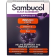 Sambucol Immuno Forte Capsules — це харчова добавка у вигляді капсул з екстрактом чорної бузини (Sambucus nigra), збагачена вітаміном C та цинком. Вона створена для підтримки імунної системи протягом всього року. Продукт підходить для людей віком від 12 років, веганів/вегетаріанців (залежно від регіону) і не містить доданого цукру чи штучних барвників.